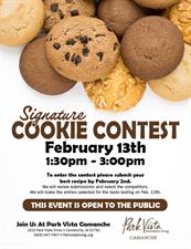 Please submit your favorite cookie recipe to Park Vista by February 2nd. We will select the recipes to be entered into the competition and our culinary dept. will bake them. Then join us on Feb. 13th during our Valentine party to taste and vote for your favorite to become our "Signature" Park Vista cookie.